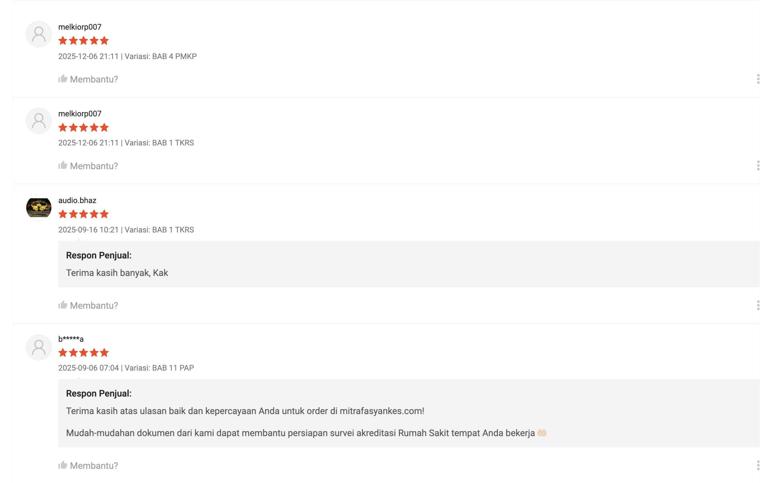 Ya, Kami juga melayani pembelian berkas akreditasi rumah sakit per standar atau elemen penilaian sesuai kebutuhan Anda. Silakan hubungi kami via whatsapp untuk pembelian lebih cepat